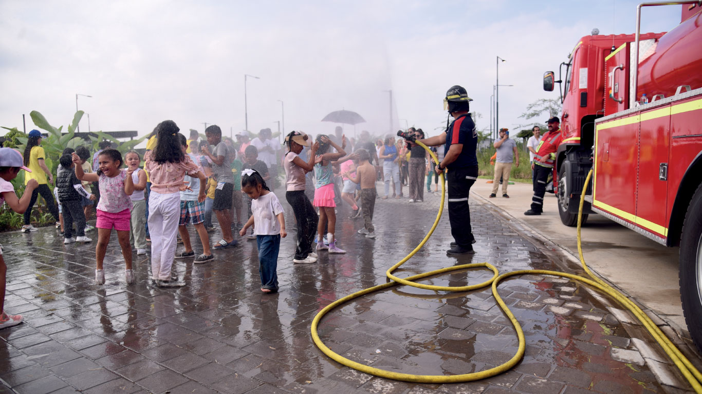 Ejercicio de agua por el Cuerpo de Bomberos de Samborondón. | Municipio de Samborondón